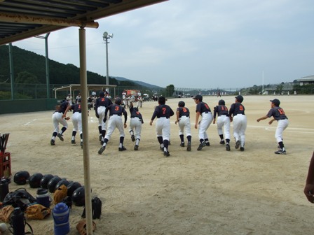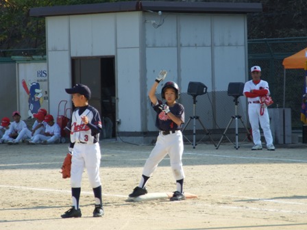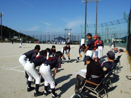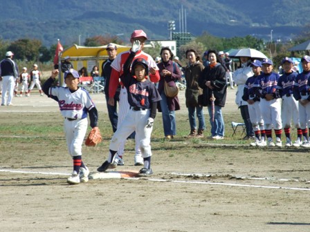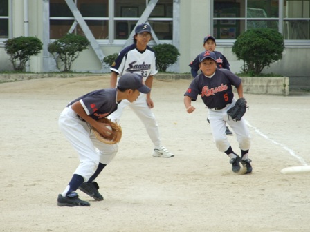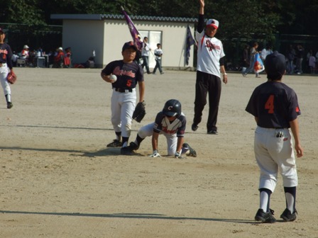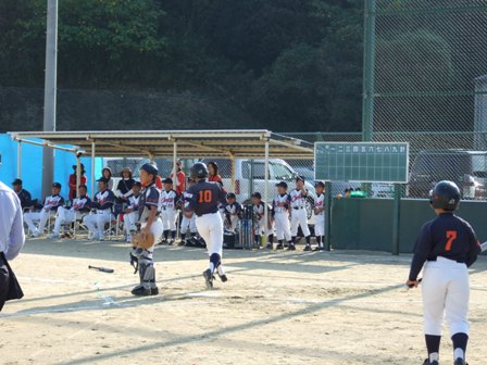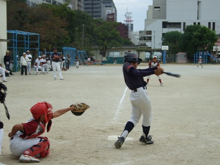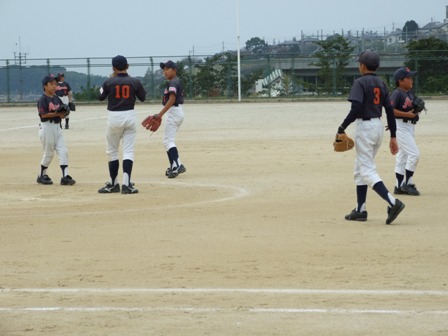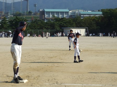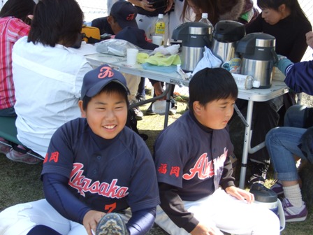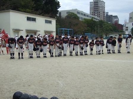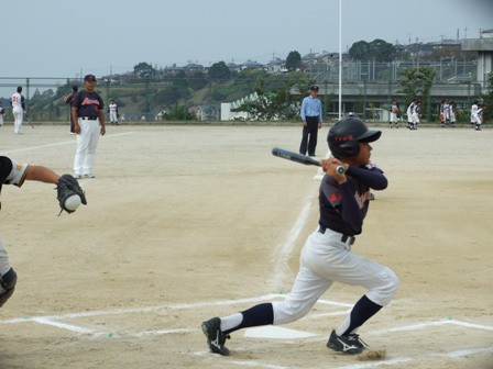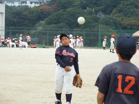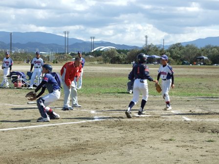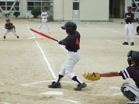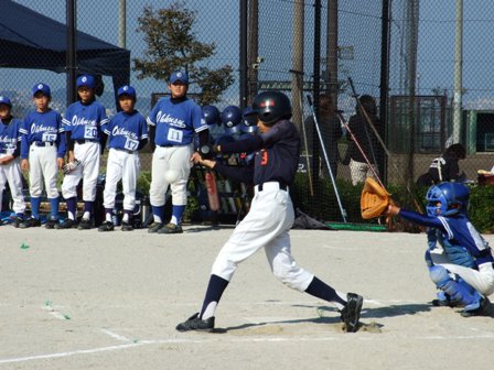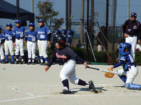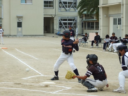 その割りに、試合のほうは・・・なんとか土がつかない程度でありました。 第1試合 VS 今光ライオンズさん 先発 コウタ 結果 1-0 勝利!! 第2試合 VS 高木スネークスさん 先発 ノン 結果 1-0 勝利!! 第3試合 VS 板付ドリームズさん 先発 ノン 結果 1-1 引き分け 最近、バットがしめりがちで・・・今日も自分たちのスイングが出来ていません。一人ひとり、コメントしたいが、ウイークポイントをさらけ出すことになってしまうので、控えます。 今日のベストプレーヤーは、ダイチくん バッティングも決して大振りせず、ミートを心がけました。 11月の大会に向け気持ちを切り替えて、もう一度やり直そう!! 10月25日(日曜)