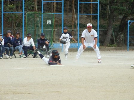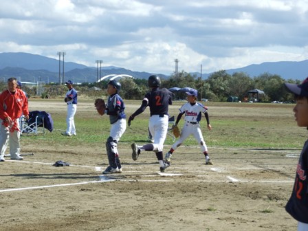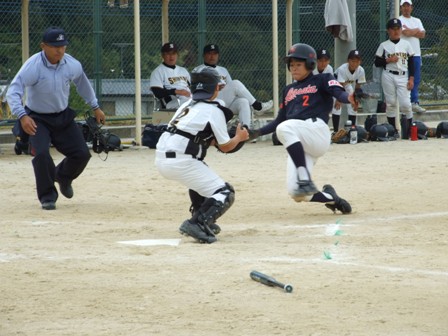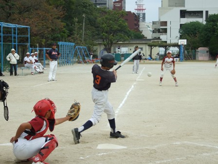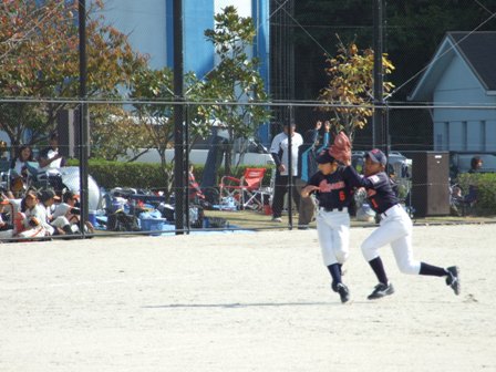 TVのリンクには、下山門、柏の森、メッツ、日の出、大楠が入りました。 結果だけとなりますが、 本日の試合内容では、申し訳ないような気持ちですが、 強豪同士のつぶしあいとなり、パート優勝となりました。 明日は、ベスト8からの試合となります。 一つでも上に行けるようガンバロウ!! 残ったチーム情報です。 Aパート ひばりが丘チェリオ Bパート 風林火山 Cパート 明治バイソン Dパート 千早西クラブ Eパート 東月隈コンドルズ Fパート 北野シャイナーズ Gパート TV赤坂 Hパート 吉塚クリッパーズ 1試合目 VS 大楠さん 結果 3-0 勝利!! ケンショウ骨折のため、ソウが先発です。 今日の試合は、5人のオーダーを変えて臨みます。 どのような、展開になるかというより 得点の可能性が高い、オーダーを考えてみました。 打順をいじると、リズムが乱れることが多かったけど・・・ 何とか機能しました。 それよりも、この大会はリンクでまず2勝すること そして失点しないことが、リンクでの戦い方となります。 ランナーを先に進めない、守備を意識することが本日のテーマです。 1試合目の勝利で、秋の日差しを気持ちよく受けることができました。 2試合目 VS 下山門さん 結果 0-0 引き分け あまりにも余裕こいて、得点できませんでした。 この時点では、リンク抜けはとても難しい状況です。 しかし、2勝したチームが出なかったことで、 大会ルールにより、失点の一番少ないチームが勝ちあがりとなりました。 テーマの一つ、失点しない守備により・・・・ エラーも多く、最後はきわどいホームタッチアウトなどもあり あくまで、結果的に失点しなかっただけですが、 決勝トーナメントへコマを進めることになりました。 今日はホームゲームということもあり、非常にたくさん方々が応援に来て下さいました。本当にありがとうございました。