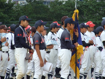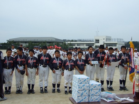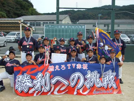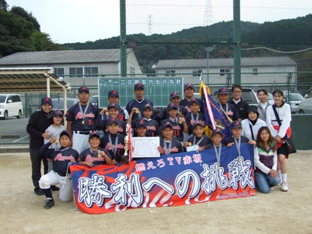 優勝しました!!(すごいぞTV) 組み合わせは、朝決まるということで、ある意味ノープランで臨みました どこと当たっても強豪だらけです、ただ一生懸命やるだけです。 決勝トーナメントには、あの北野シャイナーズさんが残っています。 九州大会予選、本戦、ことし3度の対戦があり、全て負けています。 勝手ながら最大のライバルと思っています。どうしても勝ちたい!! もう一度挑戦したい、そんな思いもありましたが 抽選の結果、決勝まで勝ち残らないと、当たりません。 夢叶う・・・・・か 1試合目 ひばりが丘チェリオさん 結果 5-1 勝利!! 昨年、玄海リーグの決勝で,最終回逆転負けしたチームです。 昨年のチェリオさんは20大会近く優勝されており、今年の5年生ピッチャーも、スピードだけでなくすばらしいコントロールがあり、強いチームです。 2試合目(準決勝) 八枝スポーツ少年団 風林火山さん 結果 2-0 勝利!! ご存知、北九州の強豪チーム あのピッチャーの速球についていけるか と思いましたが、試合を重ねるたびに子ども達のスイングもしっかりしてきたようです。 この試合ミラクルが一つ、イトケンの3塁打!!! 決勝!! 北野シャイナーズさん 結果 1-0 勝利!!(タイブレーク) 結果を先に書くのがもったいないぐらい、うれしい勝利です。 予測どおり、投手戦となりました。最後のソウの送りバンドこれが全てです。(この大会も、多くのミスがありましたが、それを確実にみんながプラスにしてくれていることがとてもうれしいです。) 今日は、おいしいお酒をいただきましょう 参加48チーム 6チームごとのリンク戦です。