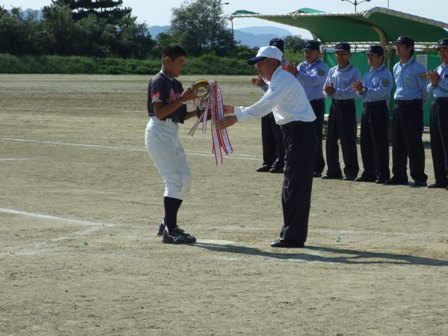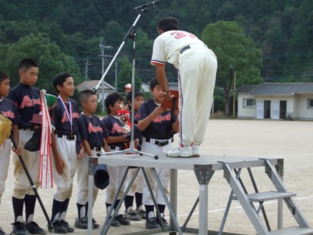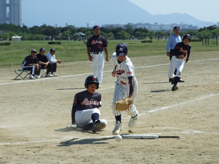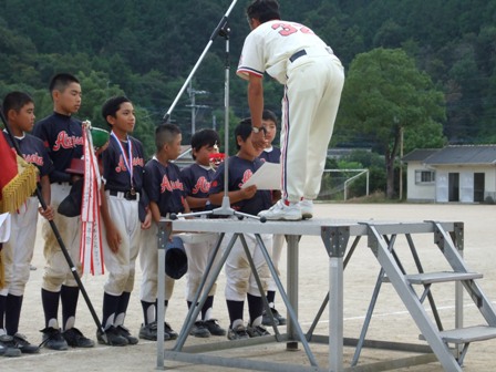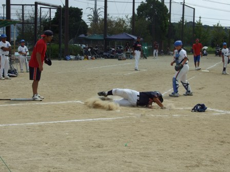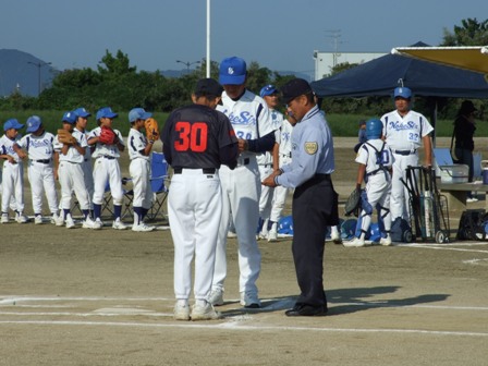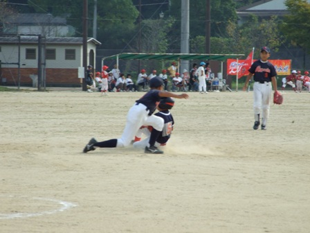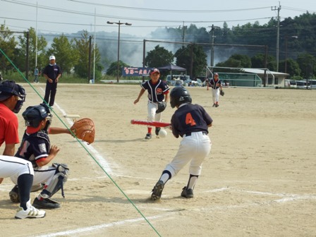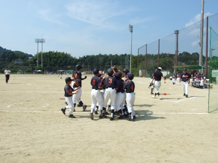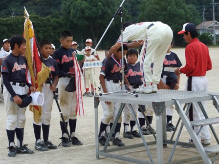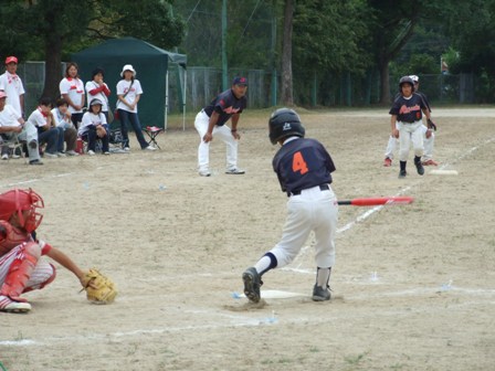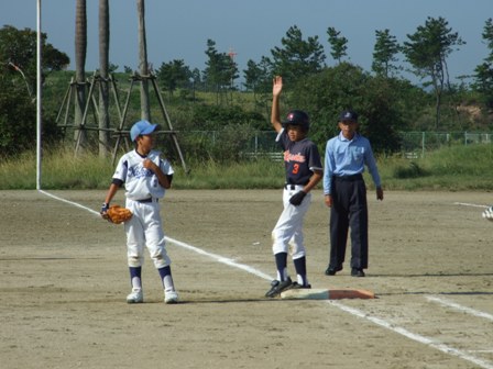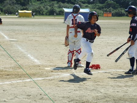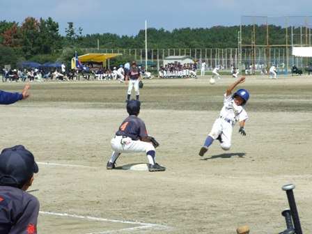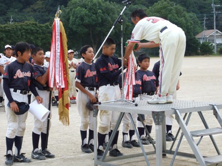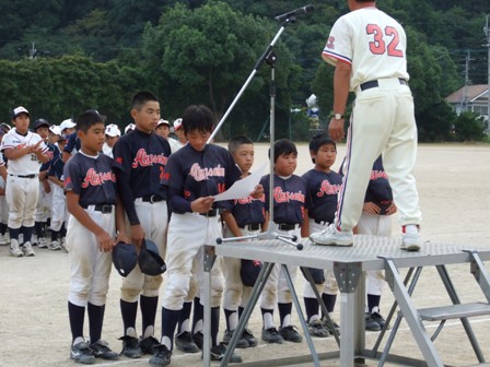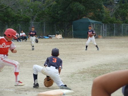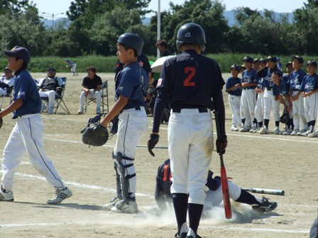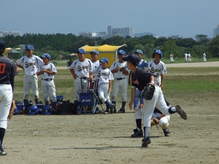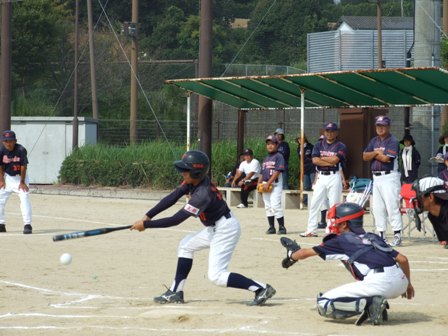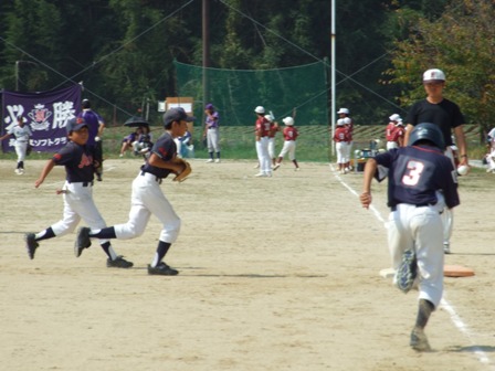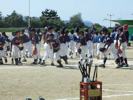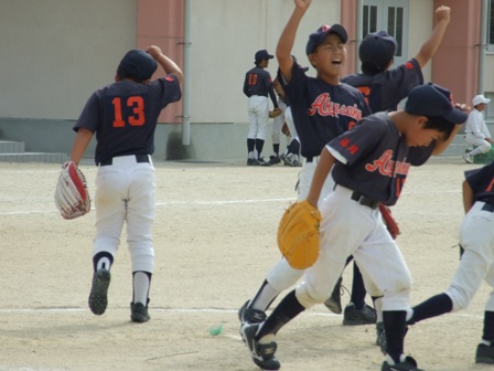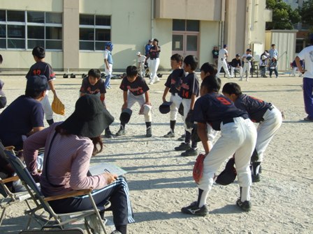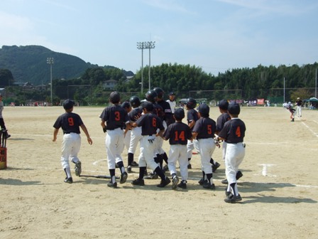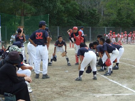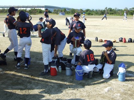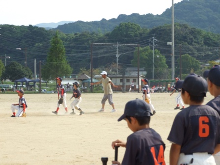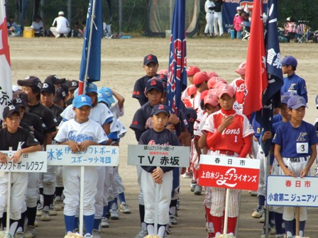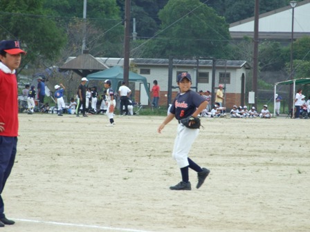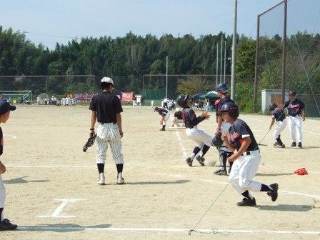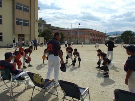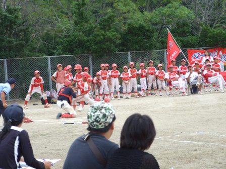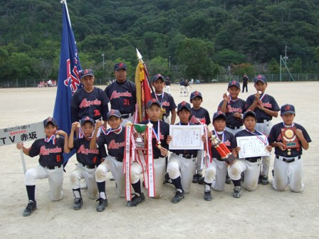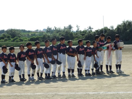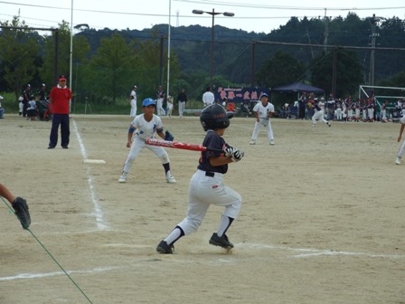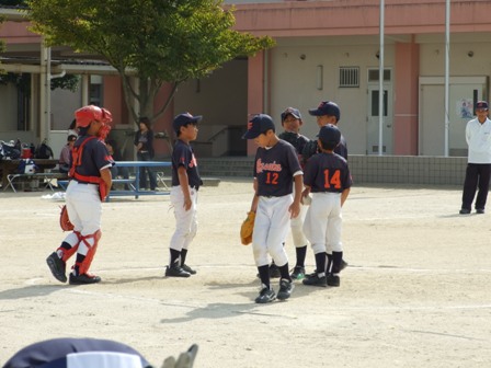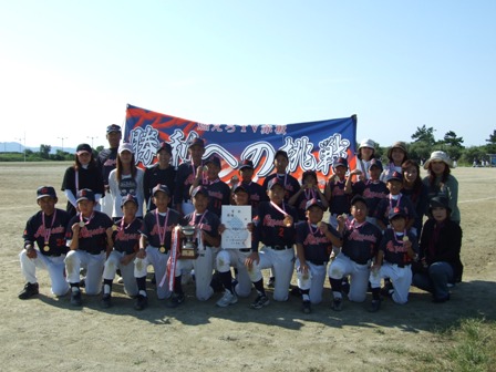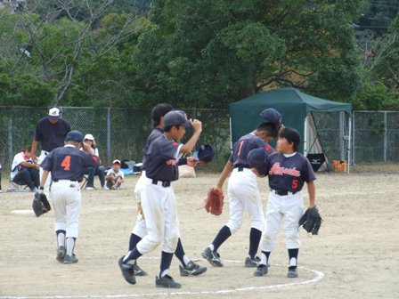 第1試合 VS 那珂南クラブさん 今年の福岡少年を制し、フレンドシップでも現在首位のチーム 大変な強豪です。 対戦させていただくたびに、多くの事を学ばせていただいています。 試合は、なかなか点が取れずタイブレークになりました。 守りきったところまでは、良いのですが・・・ 点をいただいて勝たせてもらった感じになりました。 試合全体を通じて、だれがみても那珂南さんの勢いの方がありました。 子ども達の覇気の無さばかりが目立ちました。 勝って怒られるこの気持ちがわかるかな~ 結果 1-0 勝利!! 2試合目 VS 勝楽寺子供育成会さん 今年、練習試合などでとてもお世話になっているチームです。 先日の福岡少年ソフトでは、なかなか得点させてもらえませんでした。 さて試合のほうは、1点先制されるも、すぐに取り返したのがよかったかな 3-1 勝利!! 本日は、ここまで・・・ 結果勝ったものの、不甲斐ない試合内容で、このあと小学校に戻って コーチ陣による、鬼の特訓があったとかなかったとか 10月4日 決勝トーナメント ちびっ子たちも応援に駆けつけてくれました。 準々決勝 VS 野芥シックスさん 2-0 勝利!! 準決勝 VS 南片江レオーズさん 歴史のあるいわずとしれた、強豪チームです。 相手チームに2つのアクシデントが起こり、心配でしたが。 代わりに出た選手の元気さに、こちらも思いっきりプレーすることができました。 結果 5-0 勝利!! キャッチャー君大丈夫だったでしょうか? そして、いよいよ 決勝戦 VS ベースボール青葉さん 今年のピザクック杯を制された、強豪です。 前回の対戦は、エース君ではなかったにも関わらず苦戦しました。 もちろん、全力でぶつかります。 1回に、2つのエラーから1点を先制されますが、ずるずるいかなかったのは成長を感じましたね。すぐに取り返し、中盤、終盤と追加点を取る展開でしたが、最終回まで気を抜けない戦いでした。 結果 勝利!! 優勝!!!!!!!!!!! 2週連続 Ⅴ です 優勝は出来すぎですが・・・1試合ごとに自分たちのプレーを修正できるようになっています。決勝戦は、胸をはれる試合になりましたね 今日のナイスプレーは、イトケンですね。先の塁を積極的にアウトにいく姿勢が、ゲームを作りましたね。よかったぞ!! めでたしメデタシ・・・・ 朝4時 眠い目をこすりながら出発 こんなに早起きしたのは初めて!!