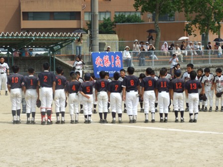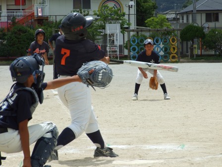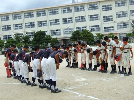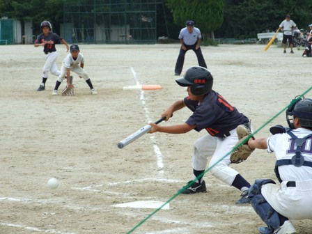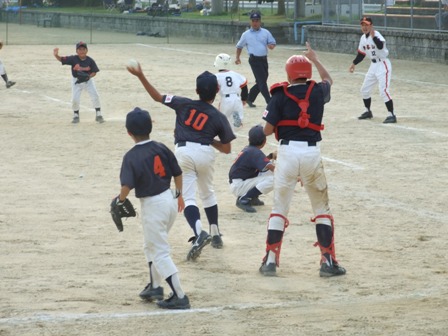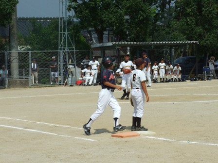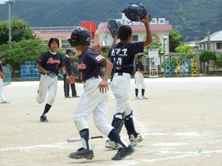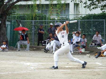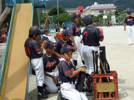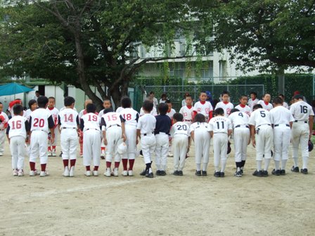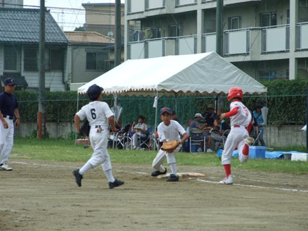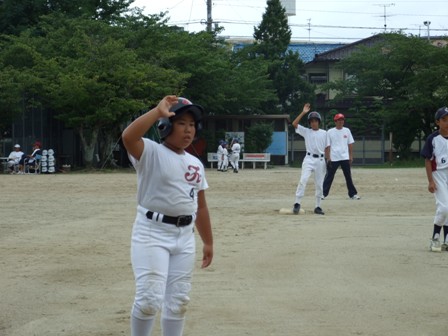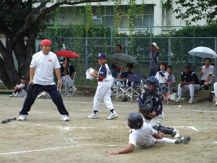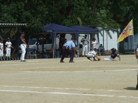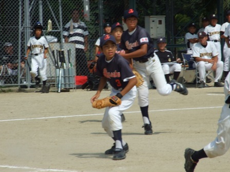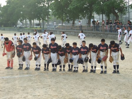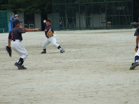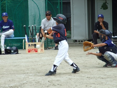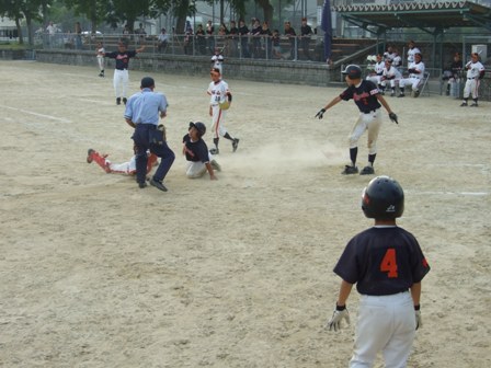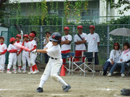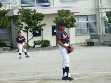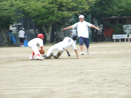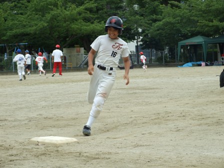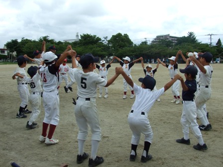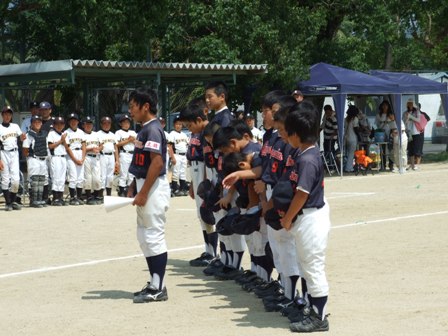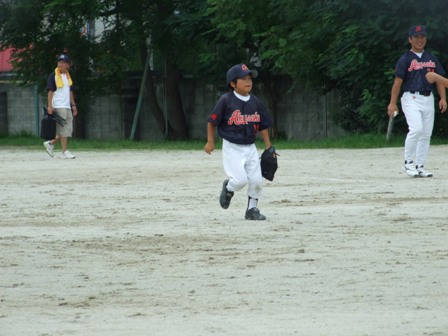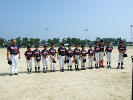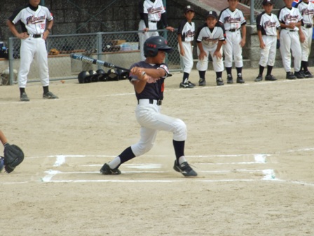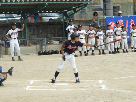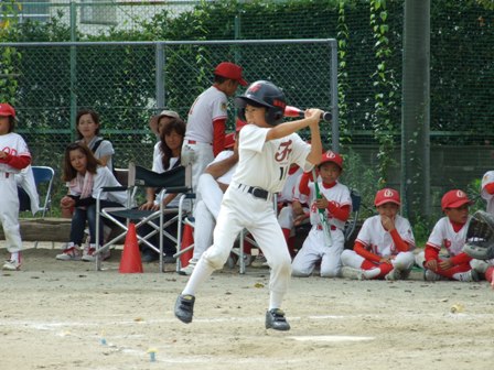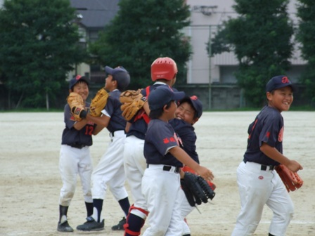 大変お世話になりました。準備いただいた皆さまにも感謝申し上げます。 また、試合の相手をしていただきました、八田リトルペガサスさん、千早西さん、ODサンダースさんありがとうございました。 この時期にも関わらず涼しい1日で、おいしい差し入れもいただき、練習試合とは言え、すごくリラックスした1日でした。 さて、試合のほうは 疲れがとれていないのか、レギュラーの元気の無さに比べて、チビッコ戦の方が盛り上がりました。 レギュラーの入れ替えの可能性あるかも? 特にODサンダース戦では、唯一のいいあたりは4年生だけだった。 ODサンダースのピッチャーの、ゆったりしたフォームからの速球はとても早くすばらしかったです。(このクラスはなかなか打てませんね・・・) 管理人不在だったため、2試合目からの写真しかありません。 2試合目の圧巻は、2.3.4の3連続ホームランでした。 3試合目 ODサンダースさん チビッコ戦(日佐さんとの合同チームです) 意外にも?しまった試合となり、さよなら勝ちで、勝利の喜びを知りました。 PR 報告!!
