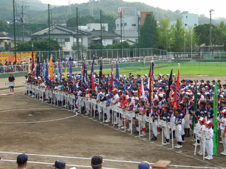 大健闘 全九州小学生男・女ソフトボール大会3位 になりました。 おめでとう!!!!!!!!! 子どもたちはとてもがんばったと思います。 とても疲れたけど、充実した3日間でした。 優勝 北野シャイナーズ(福岡県) おめでとうございます 準優勝 大崎ソフトボールスポーツ少年団(鹿児島県) 3位 TV赤坂 宮内ソフトボールスポーツ少年団(鹿児島県) 1日目ー 予想したほどの渋滞もなく、余裕を持って現地到着 急遽、練習場所を探し宿舎近くの小学校へ・・・ 偶然にも、同じ大会に出場するチームのホームグラウンドで 監督さんから、快く承諾していただきました。 バスの長旅により、硬くなった身体をほぐすことが出来ました。 本渡北小学校の皆さま、本当にありがとうございました。 ・・・が、練習に気合が入りすぎて監督会議に1分ほど遅刻・・・・反省。 そして開会式 だんだん気持ちが盛り上がるはずだったのですが・・・ 本部へのアイサツで帽子を上げたの、上げなかったのと 選手たちは、小競り合い クラブチームとしての自覚を持ちなさい!! ・・・・・・結局これがこの日のテーマに。 まあそれより心配なことは、 チーム始めてのお泊りで 子ども達がおとなしく寝てくれるかどうか・・・ 32コーチの大変な苦労により、試合に臨む体力だけは残ったようです。 2日目 翌朝も、出発前に練習。 ここで、大失態・・・・・・・ なんと自分が寝坊!!(汗) 大慌てで練習に参加 大反省です。 二日酔いなど言えるはずもなく、みんなの冷ややかな目の中 子ども達への謝罪から、今日の1日がスタート まあそんなことはお構いなしの子ども達。 逆にリラックスになったのかなと、あくまで前向きに試合に臨みます。 スコアがないので、詳細に表現できませんが・・・ 1回戦 大分県代表 明野日の出ソフトボールさん 4年連続 本大会出場と伺い ものすごく貫禄を感じていました。 試合開始直後、先頭バッターコウタがいきなりダイレクトフェンスの長打を打って勢いをつけると、みんな打つわ打つわ、序盤で大量得点となり、ピッチャーを3人投げさせる余裕が出来ました。(最後は4年生コウスイが3イニングを投げた) 結果 17-1 勝利!! 2回戦 熊本県代表 本渡南小ソフトボールクラブさん 6年生が20人以上 練習時間も週3回 ・・・うちと同じ練習量(!!)となれば、苦戦を考えました。 結果 7-0 勝利!! 3回戦 鹿児島県代表 東谷山ソフトボールスポーツ少年団さん 毎年のように大きな大会に出られている強豪で、以前より名前を知っておりました。 子どもたちのきびきびした行動や、1つ1つのプレーの丁寧さなど、試合前からどんなにひっくり返ってもうちのチームには望めないものに感じました。しかしそこは開き直り、できないならやらない、と割り切る姿勢で試合に臨む。 1点の攻防でタイブレークになりましたが、ダイチのダメ押し3塁打で勝利することができました。 結果 4-2 勝利!! 今日は特に、みんなのバッティングが光りました。 ノンは、場外ホームラン2発、タクヤも場外へ 大濠の花火大会に負けないぐらい、みんなが花火を見せてくれました。 そして、選手は全員出場することができました。(パチパチ) 1日3試合 5時間近くに及ぶ試合時間は、子ども達にはとてもハードでした。 3日目 準決勝 VS 北野シャイナーズ(福岡県代表) 1-2 惜敗!! 県大会に続いてエラーがらみの失点で、ミスがなければ、勝てる試合 だったと思います。攻撃面にも、雑な部分がありました。 采配の反省点として、最終回 ランナー3塁の時点で満塁策をとらなかった責任を感じています。 またやってしまったという感じです。 負けた気のしない敗戦でしたが 試合後のエール交換で、すがすがしい気持ちになりました。 準決勝では、どちらも同じ条件とは言え体調管理に気を使う大会となりました。 ただ、誰一人へたばることなくできたことで、子ども達の成長も感じました。 また、試合ごとに明らかに気持ちの成長もあります。 勝ちたいと思う気持ちが、負けたときの悔しさに反動します。 次の努力につながる試合ができました。 もう一つの思い出 渋滞を避けてフェリーで長崎へ バスの中では、なぜか羞恥心の大合唱!! この大会に向けて、大変多くの方々からの応援やご支援を頂戴いたしました。 簡単ではありますが、御礼申し上げます。 TV赤坂は、応援、サポートする皆さんを含めてのチームです。 選手だけでは、試合は出来ません。多くの方々に感謝です。 どうも、ありがとうございました。 TV赤坂 初戦の相手は、大分県代表 明野日の出ソフトボール部さんに決まりました。 8月1日 11:00プレーボール